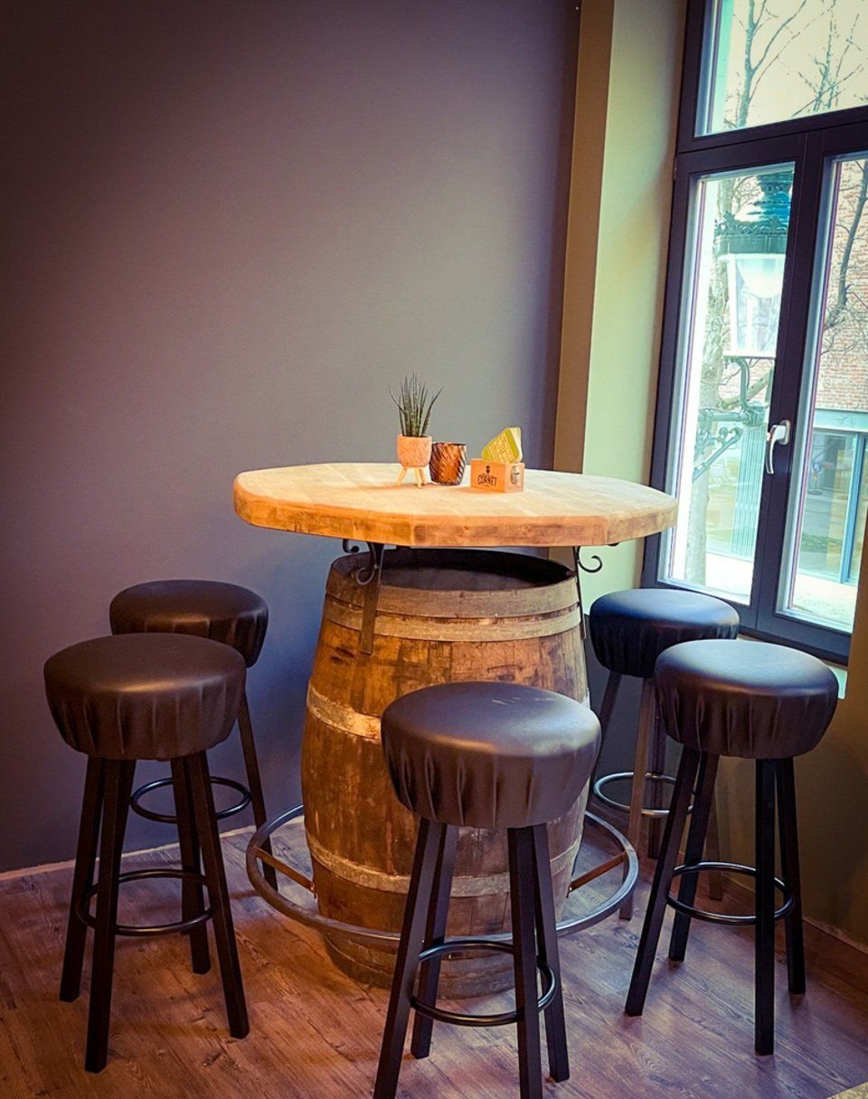 Naast onder meer Jupiler, Leffe, Karmeliet en La Chouffe van het vat vindt u op onze kaart ook een uitgebreide selectie aan huisbereide cocktails, sterke dranken, frisdranken en nog veel meer. Eten serveren wij niet, maar gezien de overdadige hoeveelheid uitstekende brasseries en restaurants in de directe omgeving hoeft dit absoluut geen probleem te zijn. Wij kiezen er bewust voor om een echt, authentiek café te blijven. De perfecte plek voor een drankje voor het eten, na het eten, of simpelweg wanneer u er goesting in heeft. Wij zijn open van maandag tot vrijdag vanaf 12:00, op zaterdag en zondag vanaf 10:00 's ochtends.